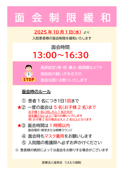 ご来院の皆様 及び 入院中の皆様への感染リスクを最小限に抑えるため、